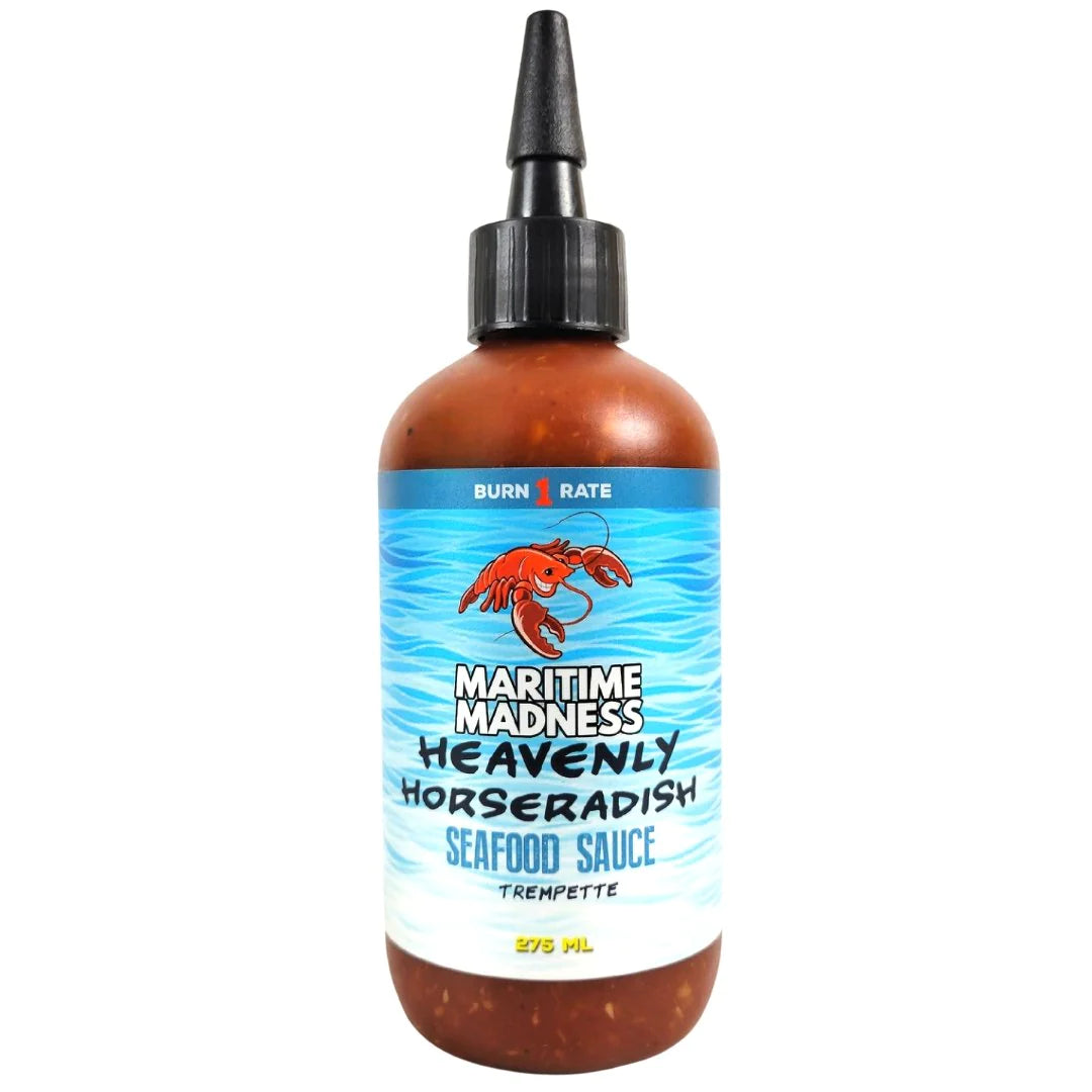 Heavenly Horseradish - a zesty seafood hot sauce loaded with personality, fiery horseradish, lemon, and lime juice. Accented with nori flakes, sweet onion and touch of cilantro, this sauce may be seafood's best friend. Perfect pairing with oysters and as a shrimp dip. Don't count this hot sauce out to use on roast beef too. Completely versatile sauce.